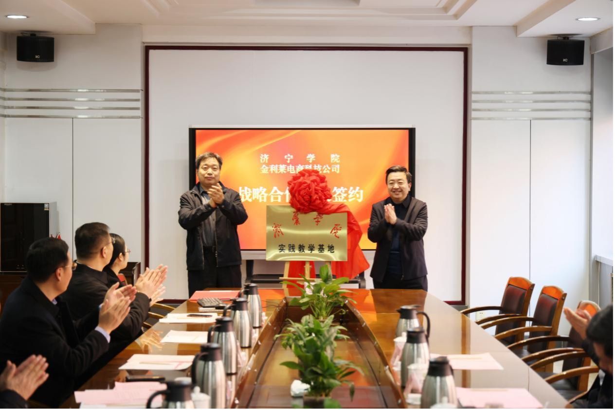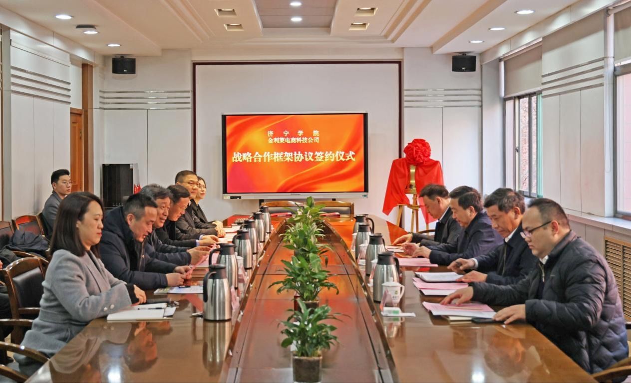 12月8日上午,我校与金利莱电商科技有限公司战略合作框架协议签约仪式在行政楼A221成功举行。学校党委副书记、校长王清明,曲阜市政府副市长、党组成员蒋永进出席签约仪式并致辞。学校党委委员、副校长李凡路,曲阜高铁新区党总支书记、发展中心主任刘一山出席活动。曲阜市商务局党组书记、局长王新宏、金利莱电商科技有限公司总经理张强和外国语学院班子成员参加本次活动。签约仪式由外国语学院党委书记陆波主持。