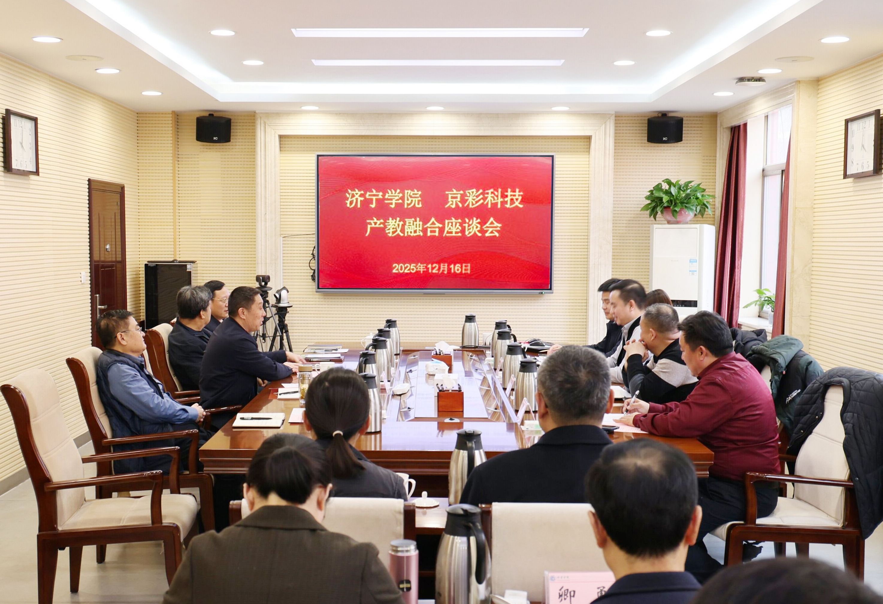 12月16日下午,京彩(江苏)科技有限公司党组织书记汪世龙带队来我校交流洽谈校企合作、产教融合等事宜。学校党委书记仲红波,党委副书记、校长王清明,党委副书记丰家雷,党委委员、副校长李凡路出席座谈会。学校相关部门、二级学院负责人及企业相关部门负责人参加活动。活动由丰家雷主持。