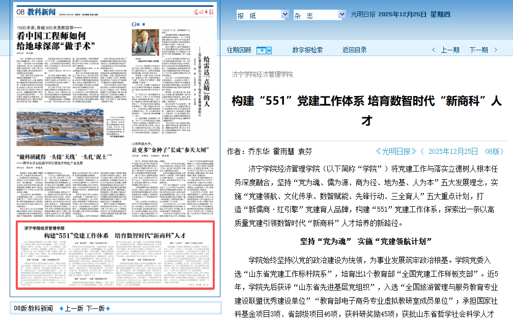 通过“551”党建工作体系的深入实践,亚星在线登录官网经济管理学院实现了党的建设与事业发展的同频共振。“新儒商·红引擎”品牌持续释放引领效能,为培养兼具家国情怀、文化自信、数智能力和创新精神的“新商科”人才提供了坚实支撑。