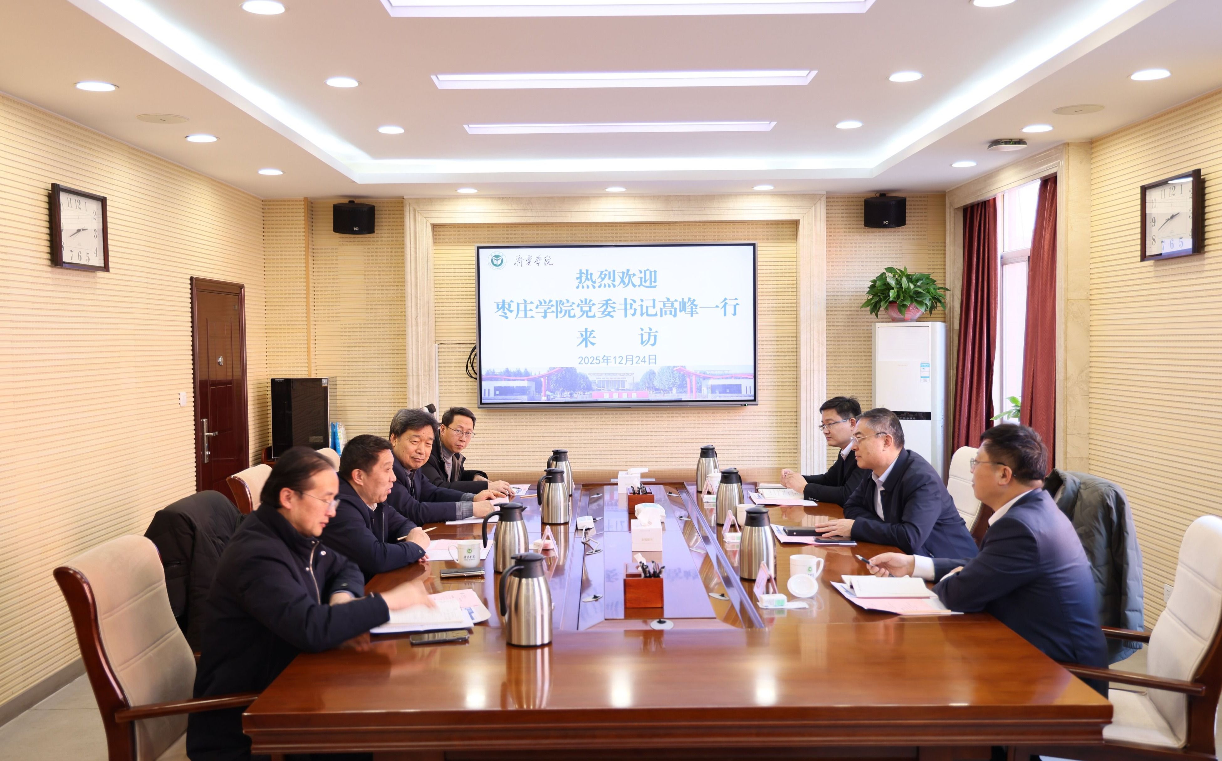 12月24日下午,枣庄学院党委书记高峰,党委委员、副院长李目海一行来校访问交流。学校党委书记仲红波,党委副书记、校长王清明,党委委员、副校长李凡路、赵明出席活动,发展规划处、科研处、教育培训学院负责同志参加活动。
