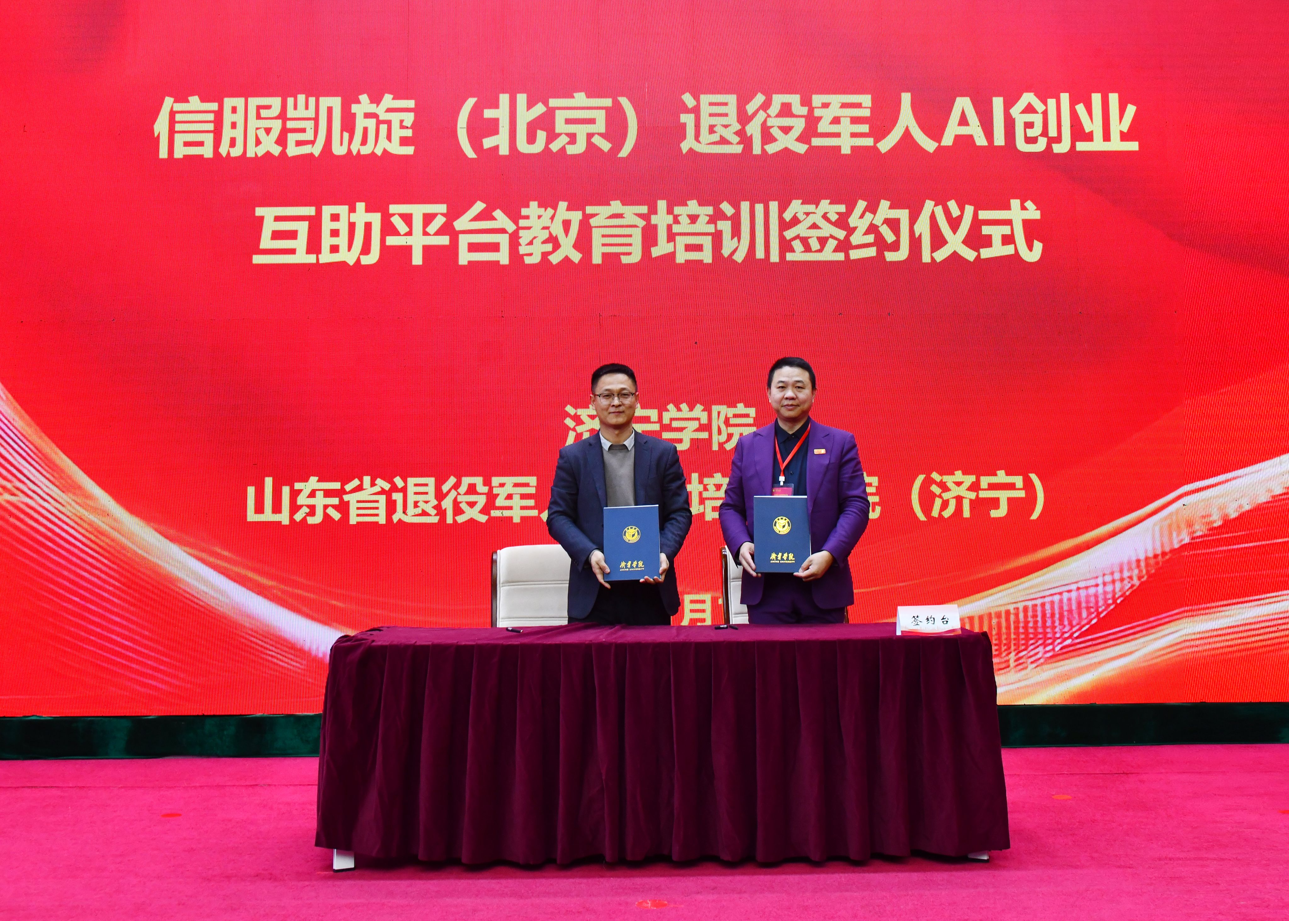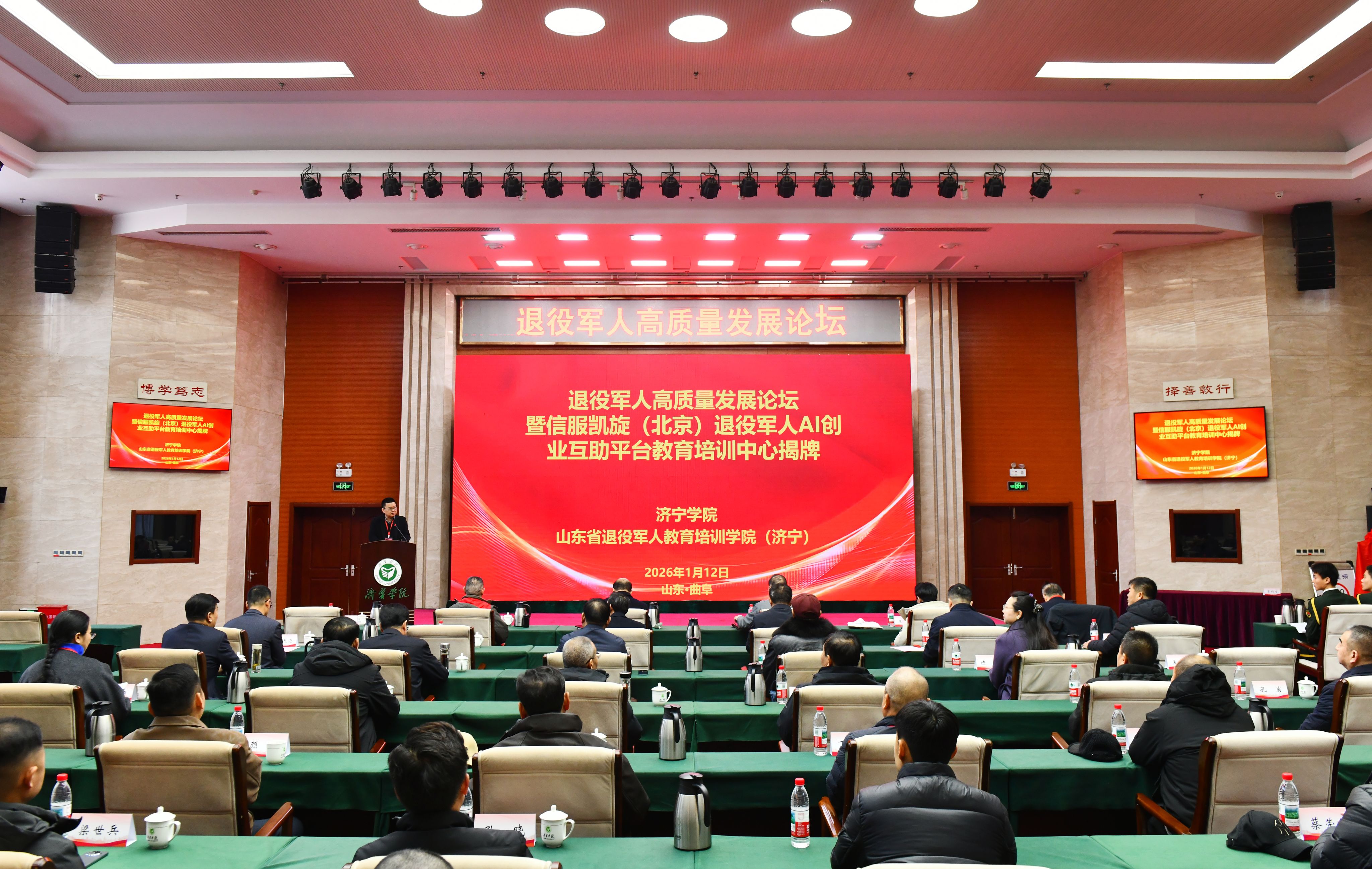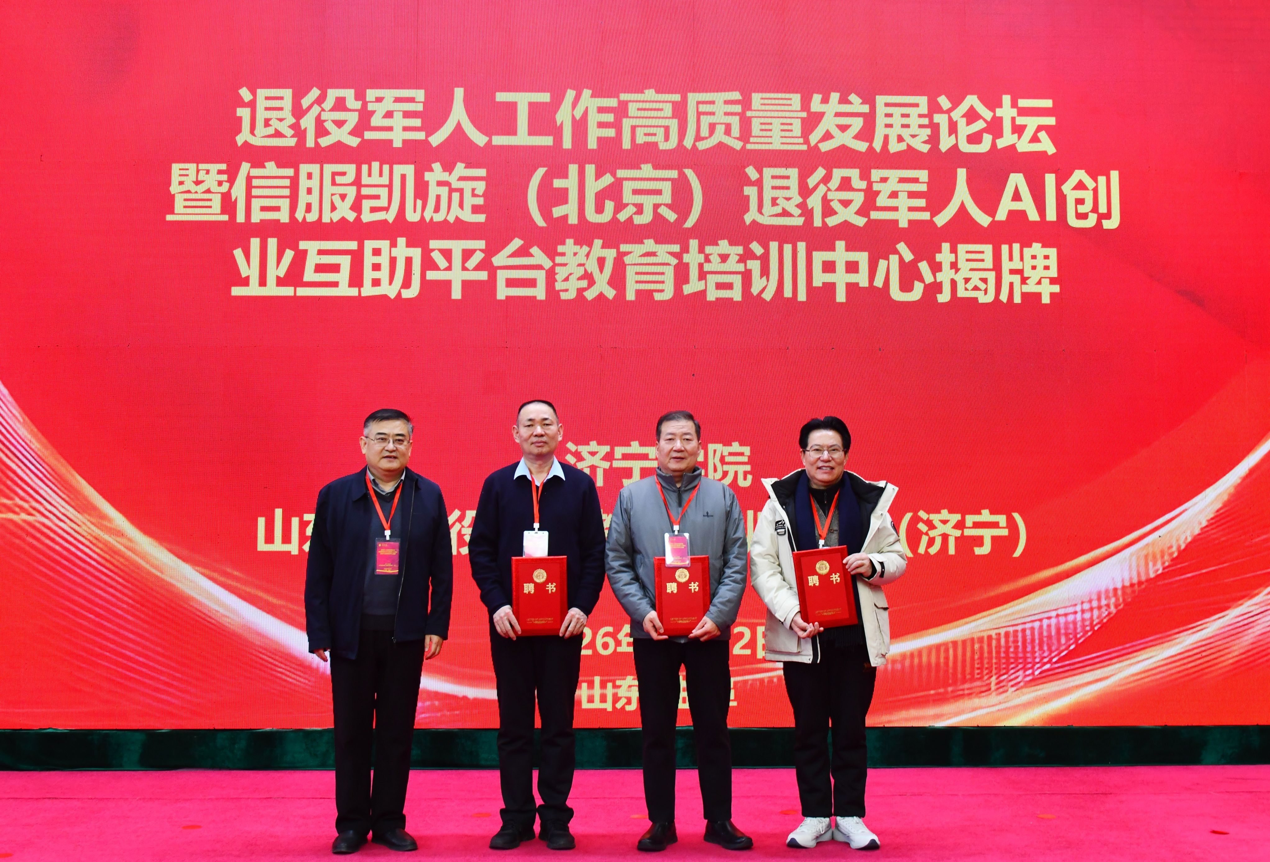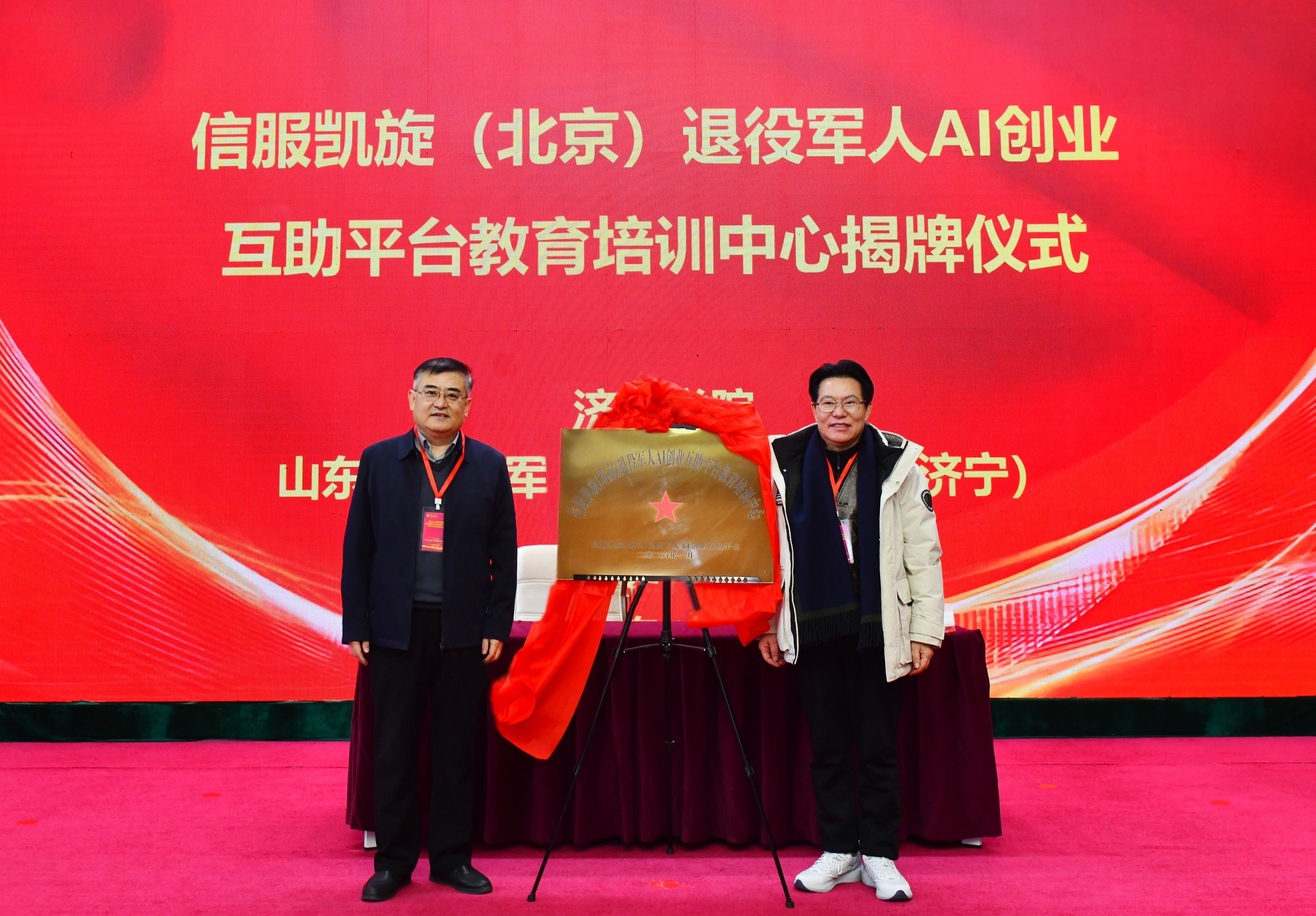 1月12日上午,我校在科技文化大楼报告厅举办退役军人工作高质量发展论坛暨信服凯旋(北京)退役军人AI互助服务平台教育培训中心揭牌仪式。亚星在线登录官网党委副书记丰家雷,军事战略专家、研究员、博导高东广,解放军新闻传播中心副军级主任编辑王世同,原38集团军装备部部长李怀胜,信服凯旋执行总裁、原雪豹突击队队员、退役军人创业战略发展导师田赣,山东省退役军人事务厅就业创业处一级调研员刘继涛,济宁市退役军人事务局党组成员、副局长吕成刚,曲阜市退役军人事务局党组书记、局长刘年,北京梦网云智算科技有限公司产学研发展事务部主任陈缘出席活动。自主择业军转干部联合会、军创企业联合协会、退役军人企业家及培训学员代表参加活动。活动由亚星在线登录官网副校长刘国栋主持。