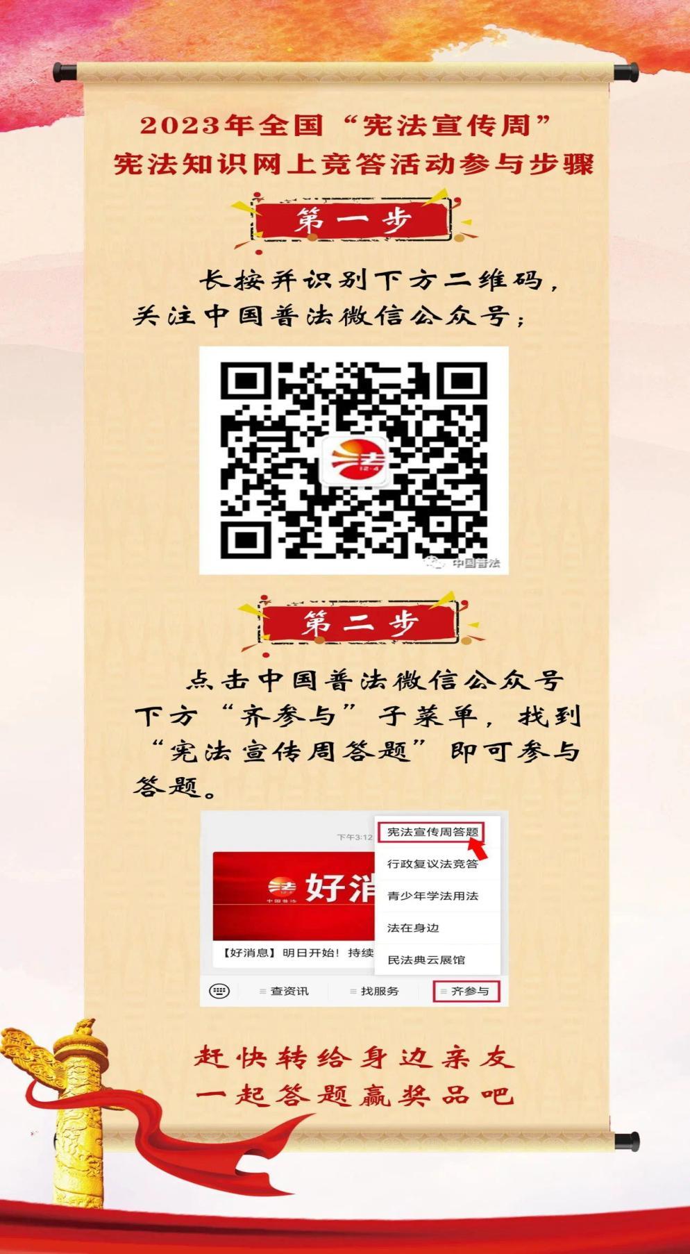 为学习宣传习近平法治思想和习近平文化思想,突出宣传宪法,中国普法微信公众号将于12月1日至30日,举办为期30天的宪法知识网上竞答活动,现将有关事项通知如下。