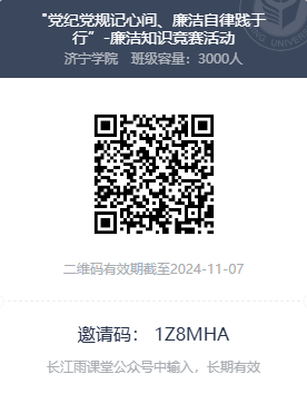 2.报名方式:报名名单发送邮箱2320766288@qq.com,在邮件主题栏标明“学院名称+学号+姓名”,并扫描下方二维码加入雨课堂班级,报名截止时间10月18日。