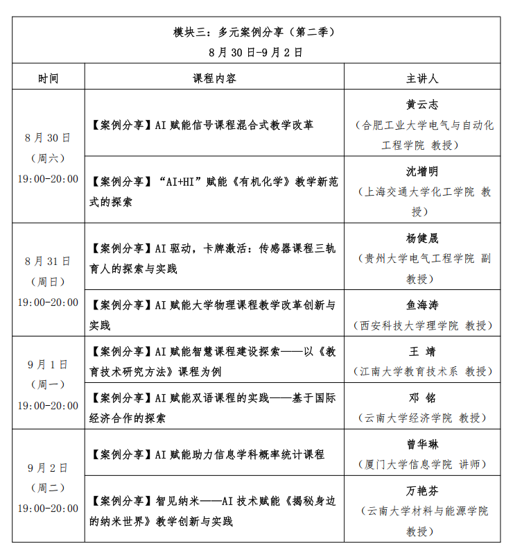 模块三:多元案例分享(第二季),8月30日-9月2日,每晚19:00-20:00。