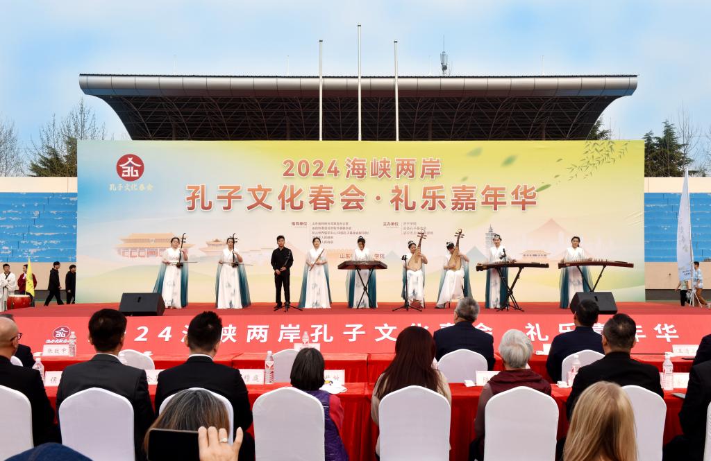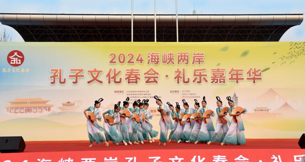 仪式结束后,进行了文艺演出,女声独唱《千古孔子》、诗经歌曲合唱《子衿》、女子群舞《醉春风》、器乐合奏《盛世雅韵》、《射礼》展演等节目,赢得观众阵阵掌声。