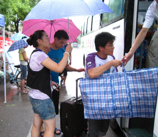 新生报到,志愿者服务于家长返程候车临时休息区与失物招领区。