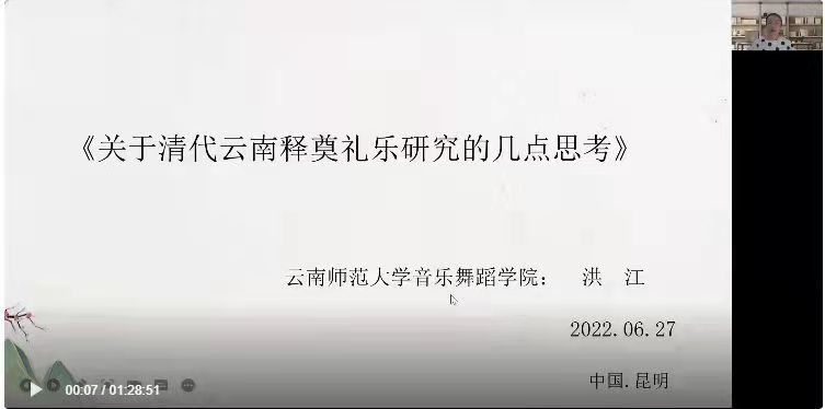 6月27日下午, 洪江以《关于清代云南释奠礼乐研究的几点思考》为题,就音乐文化遗产的田野调查方法以及文献考据与活态研究方法做了深刻的讲解,给老师们带来了启发。