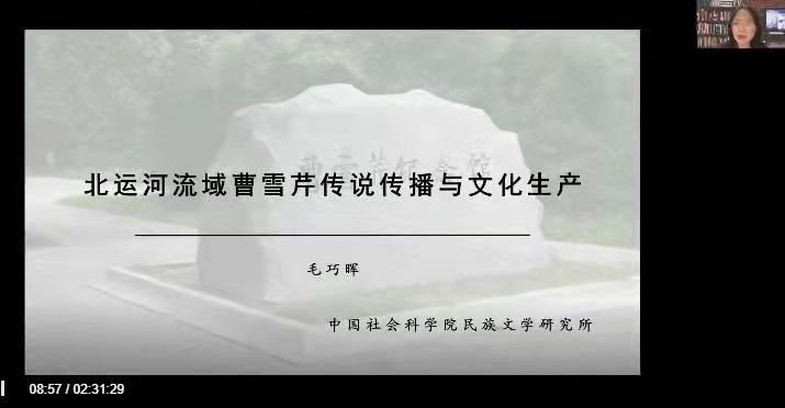 6月24日,毛巧晖以《北运河流域的曹雪芹传说传播与文化生产》为题,从民间文学的集合整理与知识生产、曹雪芹传说的文化生产路径考察、文学想象与地域民俗的认同构建等三个方面做了精彩讲座。