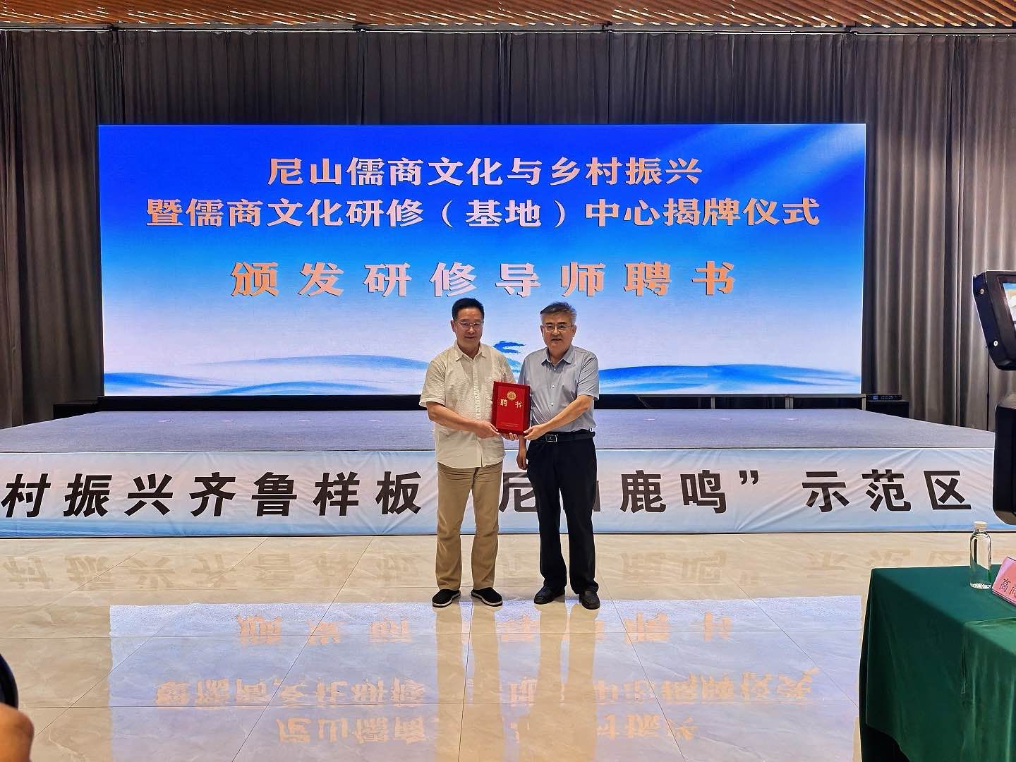 会上,尼山儒商文化研修(基地)中心聘请了首批研修导师。上海企业家代表吴兵、蒋公宝、刘魏、李风文受上海工商界爱国建设基金会理事长范永进委托,向中心捐赠了《儒学、儒商精神与中国式现代化研究专集》等典籍图书,助力儒商文化研究与传播。