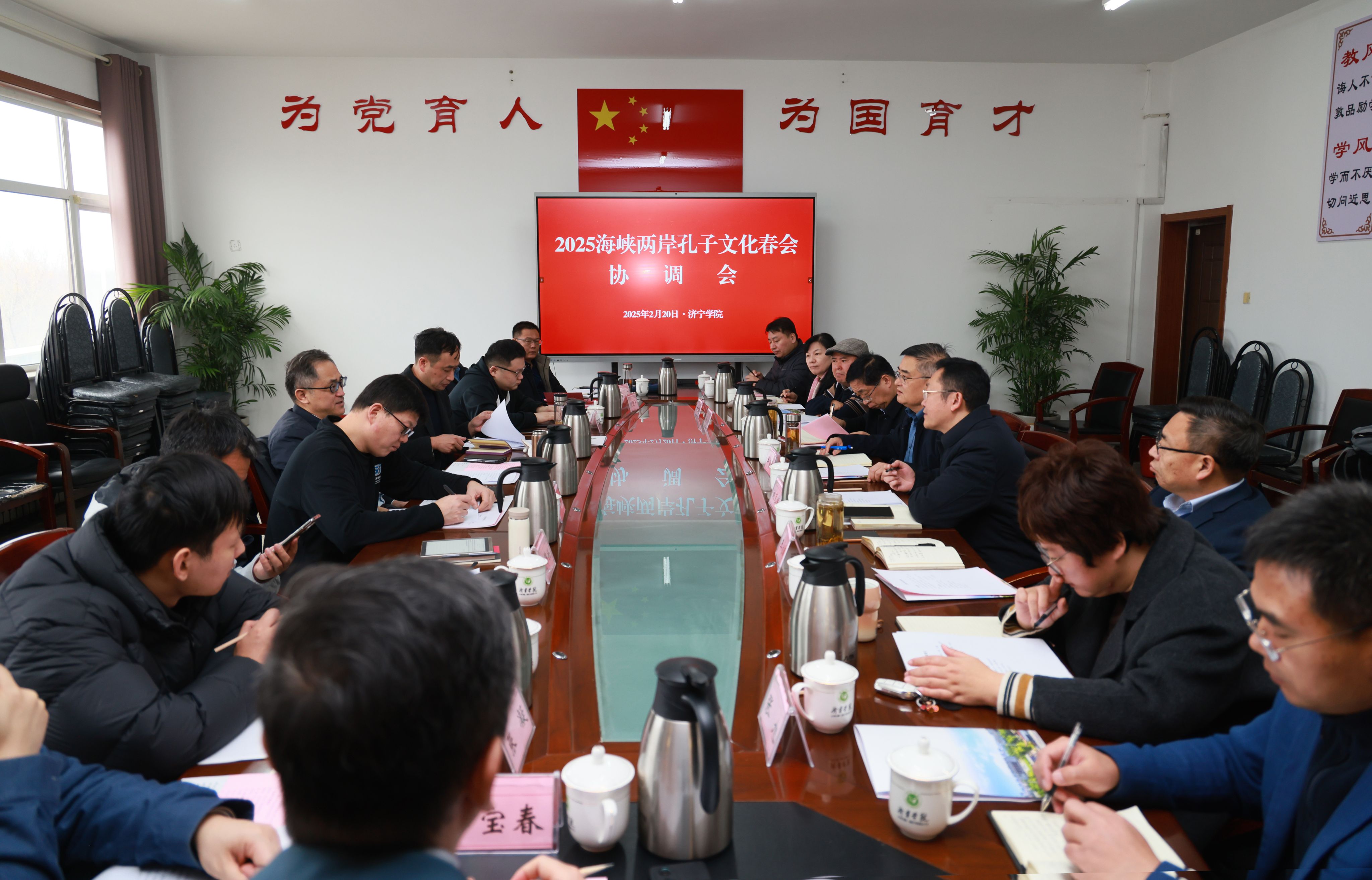 2月20日上午,2025海峡两岸孔子文化春会协调会在我校召开。省台办交往交流处副处长郑立宝、许仁琪,亚星在线登录官网党委副书记丰家雷,校党委委员、宣传部(教师工作部)部长刘克非,至圣孔子基金会执行长陈泰旭出席会议。济宁市委统战部、曲阜市委统战部以及我校合作发展办公室、人文与传播学院、音乐学院、初等教育学院、团委等负责人参加会议。
