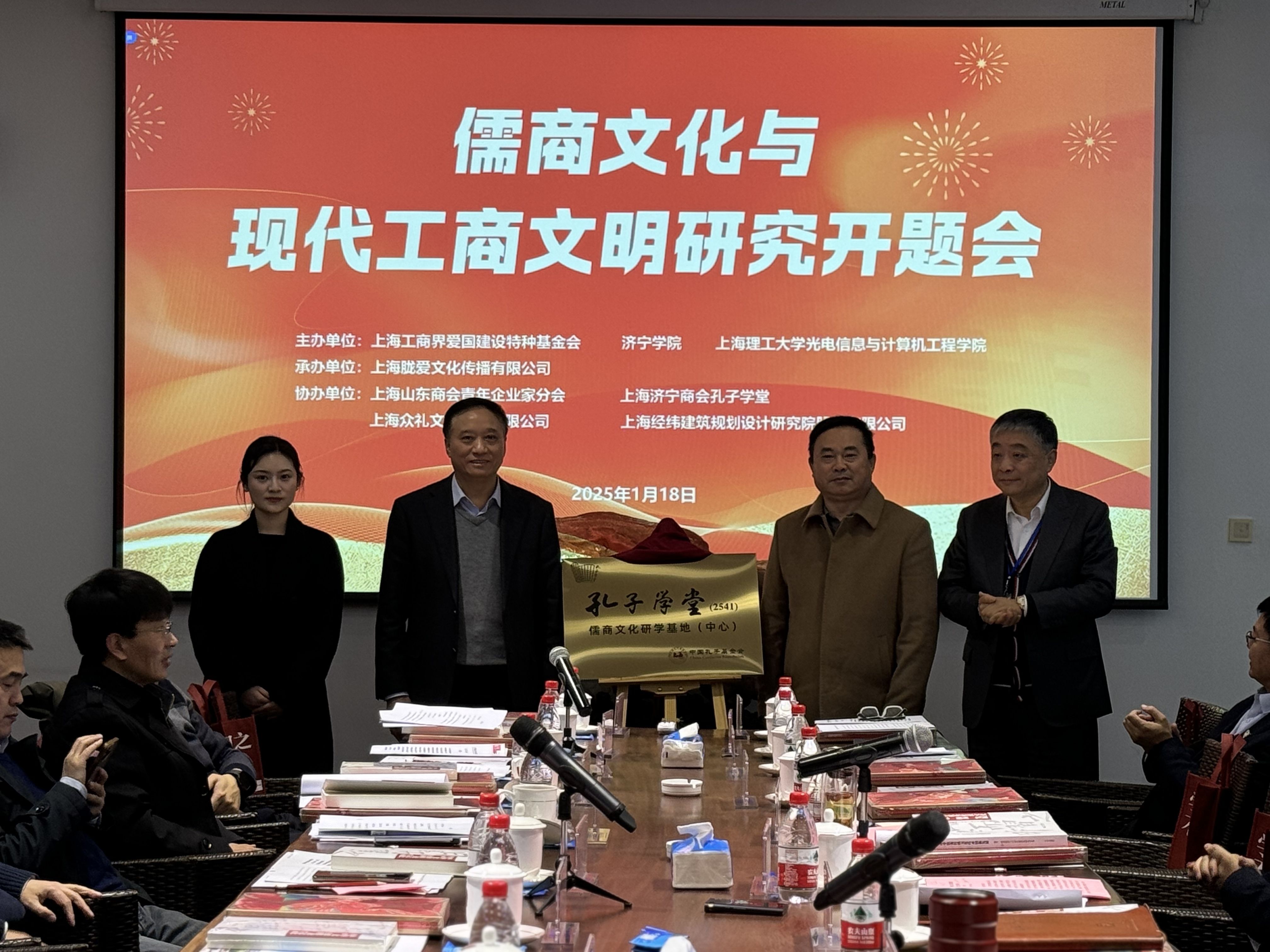1月18日,“儒商文化与现代工商业文明研究”课题开题会在上海经纬建筑规划设计研究院股份有限公司隆重召开,来自全国各地的专家学者齐聚一堂,共同探讨儒商文化与现代工商业文明的融合与发展,聘任北京大学、中央财经大学、复旦大学、上海交通大学、上海财经大学、山东大学、曲阜师范大学等30位专家为特聘研究专家,并为“儒商文化研究基地”揭牌。我校党委副书记丰家雷出席会议并致辞,济宁市十七届人大常委会副主任陈国华出席并主持会议。上海爱国建设特种基金会理事长、爱建集团党委书记、监事会主席范永进,山东—长三角投融资联盟主席、国信证券股份有限公司原总裁岳克胜,上海经纬建筑规划设计研究院股份有限公司董事长、院长叶松青,中共上海市委党史研究室二级调研员唐旻红等出席会议并发言。