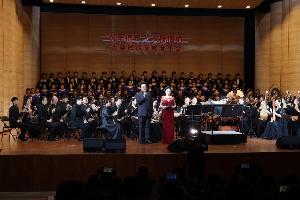 音乐会共有13个节目,节目形式丰富多样,既有民族管弦乐《我的祖国》、男女重唱《我和我的祖国》《中华梦圆》、男声独唱《我是中国人》等一批红色经典曲目;也有民族管弦乐《谁不说俺家乡好》、女声对唱《再唱沂蒙山》等具有浓郁山东风格的优秀作品;也有笛子与乐队《微山湖船歌》、柳琴中阮与乐队《弹起我心爱的土琵琶》、女声对唱《最美微山湖》、配乐诗朗诵《孔子颂》、民族管弦乐《至圣韶乐》等独具济宁元素、曲阜风格的艺术作品。本次音乐会是一场展示齐鲁文化的歌咏盛会,为观众带来了一场精彩绝伦的音乐盛宴,更让所有观众在艺术的沉浸和陶醉中,感受到中华优秀传统文化的独特魅力。