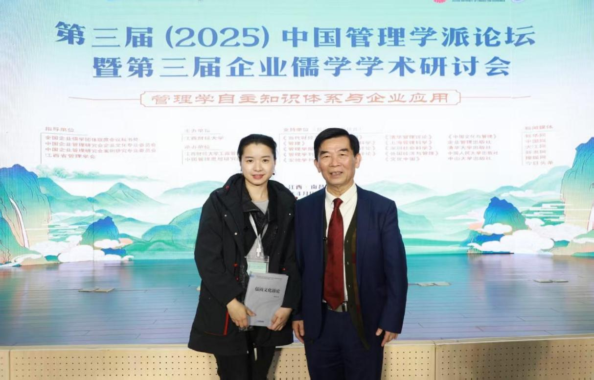 4月11至12日,第三届(2025)中国管理学派论坛暨第三届企业儒学学术研讨会在江西财经大学隆重举行。会议由全国企业儒学团体联席会议秘书处指导,江西财经大学主办,主题为管理学自主知识体系与企业应用,来自全国各地高校的教授、科研专家和新儒商企业家代表近200人参会。经济管理学院副教授林林代表学院参加会议。