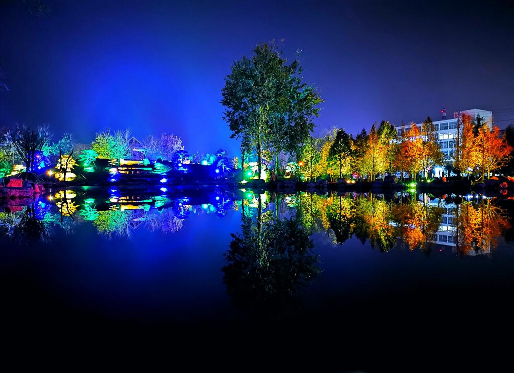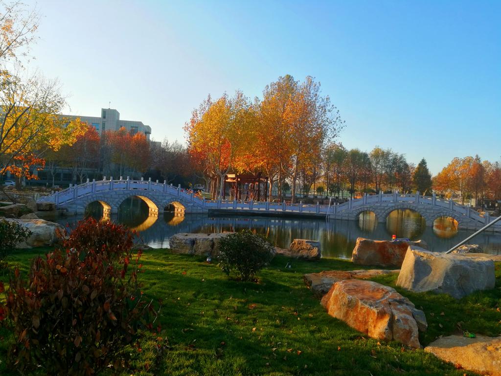 脚步迈进济院北门,向西走几分钟,映入眼帘的就是我们学校校园“湖光山色“