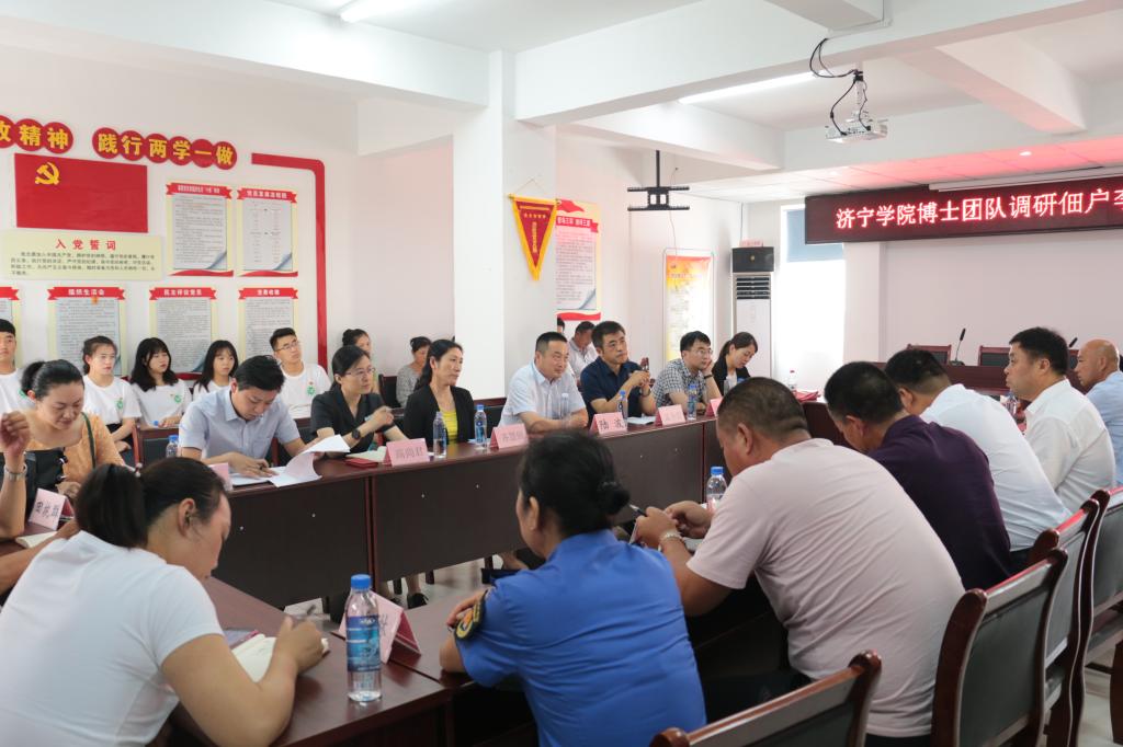 7月11日,经济与管理系党总支书记陆波、主任齐慧丽带领博士团队和暑期“三下乡”乡村振兴服务团走进党建结对村鱼台县佃户李村开展助力乡村振兴活动。孟令岩、董腾、张冠甲、高尚君等四位博士和团总支副书记袁芬,鱼台县滨湖街道党工委副书记、县经开发区党政办公室主任杜宪,佃户李村领导班子及村民代表40余人共同参加活动。