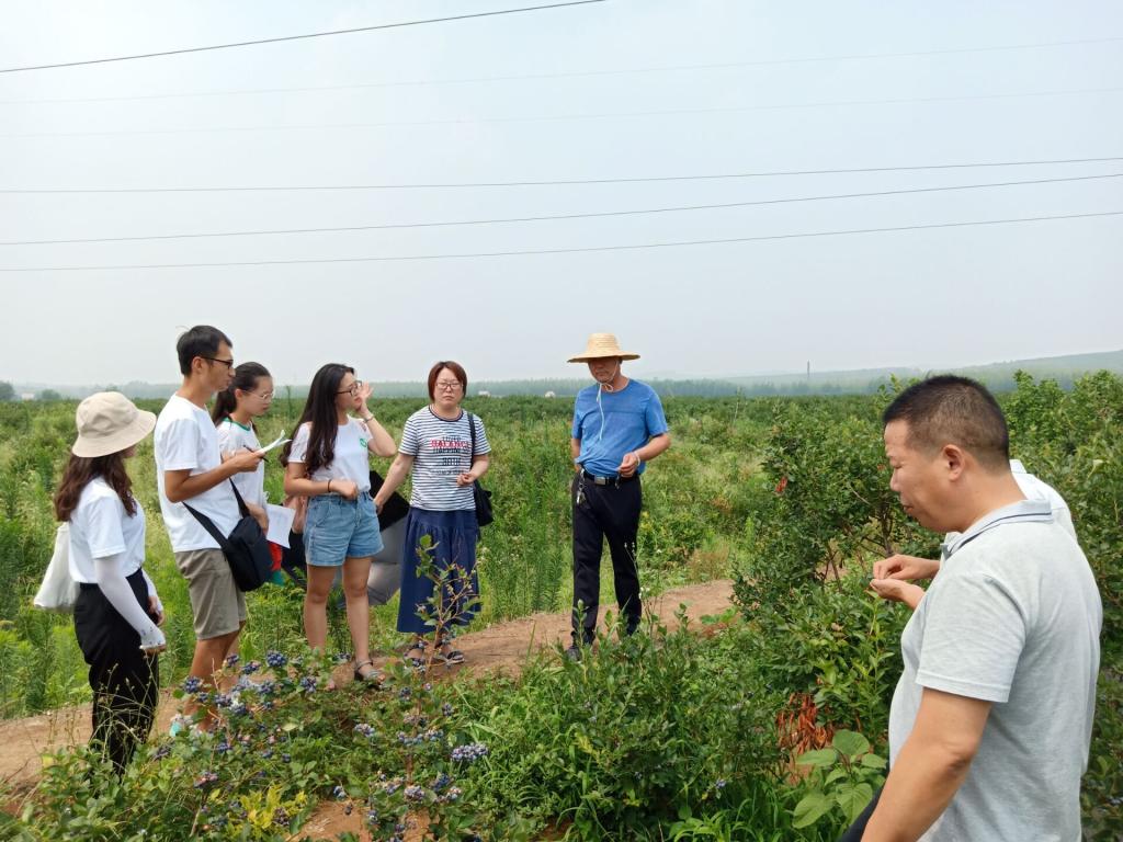 实践队教师成员首先与临沂市派驻杨谢村“第一书记”马辛格、党支部书记郭增安、村主任郭增鑫、村支两委班子就党的扶贫政策落实及党建工作的开展、农村困难群众家庭经济现状、农村产业结构调整、助力脱贫情况等问题进行座谈交流,了解该村扶贫、党建整体状况。得知临沂市杨谢村地处沂蒙山山麓,近年来通过发展蓝莓种植及深加工生态产业、党群“一对一”帮扶困难群众等方式摆脱贫困,实现全村“脱帽脱贫”。随后实践队成员到贫困户家中实地调研,与扶贫住户就家庭生活保障、子女教育就业、大病保障等问题进行面对面交流,填写调查问卷,取得了第一手资料。随后,实践队在郭增鑫带领下,师生们一起赴该村蓝莓研究所、育苗基地,蓝莓种植采摘基地进行实地调研。该村蓝莓生产基地占地近3千亩,带动全村一半以上人口就业,成为带动该村脱贫致富的支柱产业。