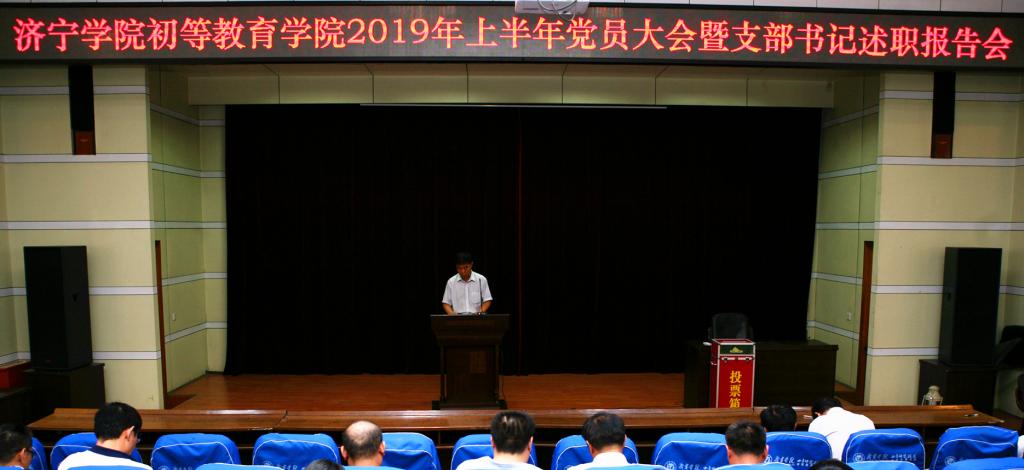 7月14日上午,初等教育学院(曲阜师范校区)召开党员大会暨支部书记述职报告会,校区党委书记朱宁波向全体党员报告2019年上半年党建工作,三个党支部的书记分别述职。党委班子成员和全体党员参加了会议,党委副书记赵正德主持会议。