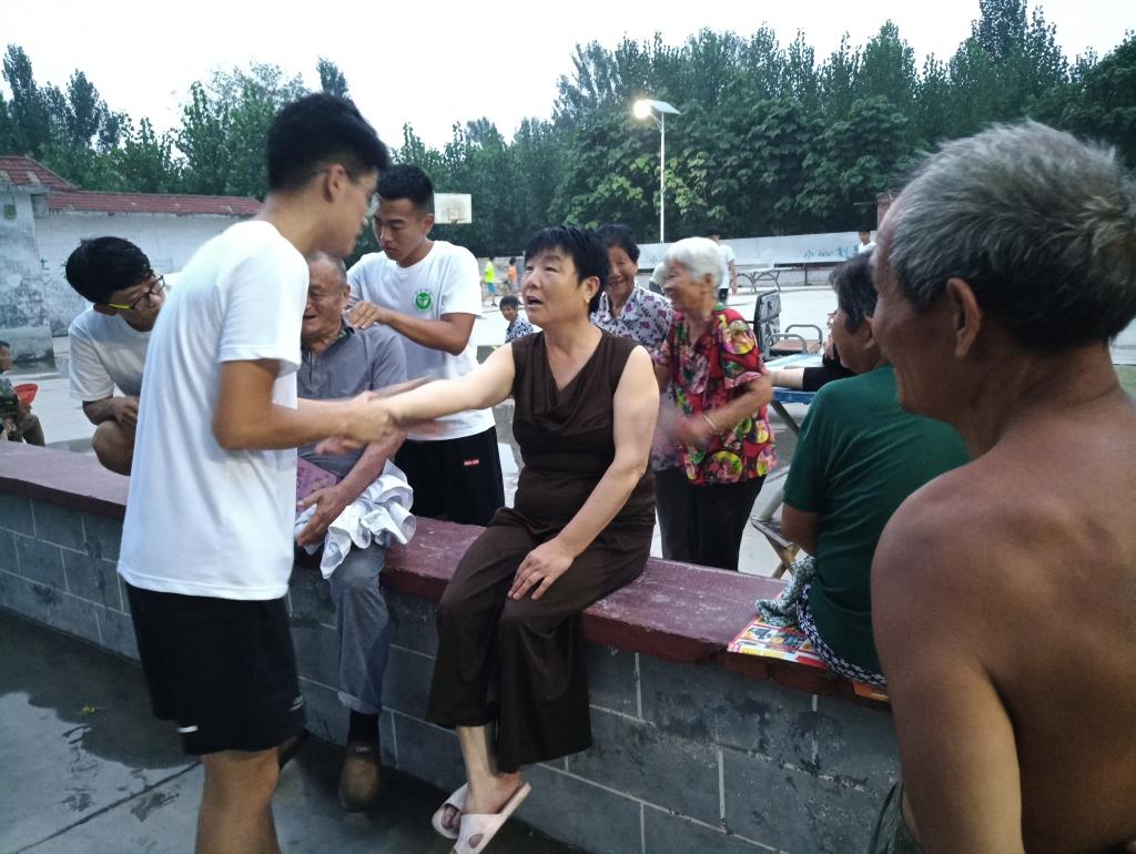 出发前,实践团进行了详细的分工,每位志愿者都撰写了社会实践计划,保证了活动的有效开展。7月10日,志愿团在杨家屯党员活动室开展“体育保健知识讲座”,为村里老人讲解养生保健知识,耐心细致地提供日常健康指导、疾病的科学处理方式,讲授了基础的保健按摩方法,增强了村民疾病预防和卫生健康意识。随后,志愿者们运用自己所学的知识,现场为村民进行了推拿按摩和诊疗。别开生面的现场服务,既为村民送去了专业指导,也使运动康复专业的志愿者得到了一次把理论应用于实践的宝贵机会。
