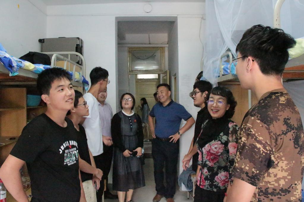 9月8日上午,中文系党总支书记王艳萍、系主任王永超、系党总支副书记李青、团总支及各年级辅导员老师深入学生宿舍看望2019级新同学。