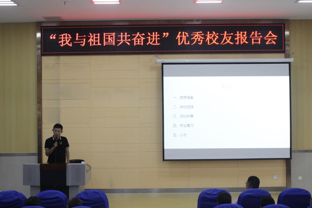 本次活动校友会办公室、体育系共同主办,是体育系庆祝新中国成立70周年“我和我的祖国”主题教育活动的首场报告会,旨在帮助在校大学生了解考研信息、增强考研信心、强化考研技巧,提高考研成功率。
