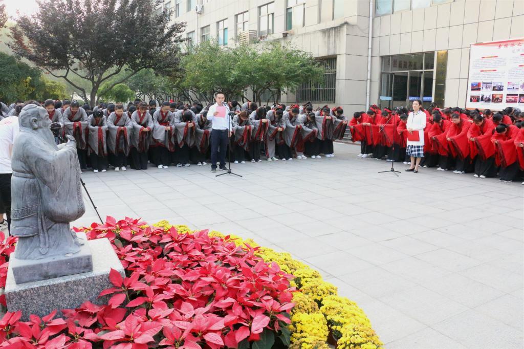 为纪念伟大的思想家、教育家、儒家学派创始人孔子诞辰2570周年,热烈庆祝中华人民共和国成立70周年,纪念习近平总书记视察济宁及曲阜6周年,经济与管理系(儒商学院)于9月28日上午在3号楼前广场举行祭拜大成至圣先师孔子仪式。经济与管理系主任齐慧丽、党总支书记陆波、教师代表、全体辅导员以及2019级全体新生参加了此次活动。