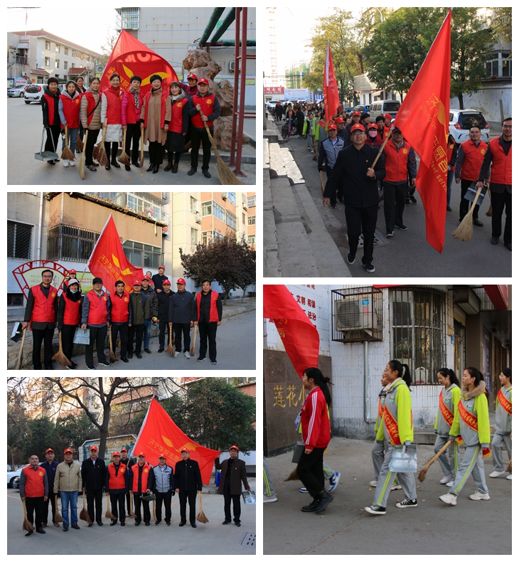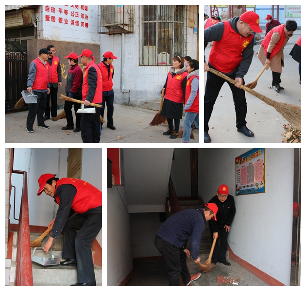 全体党员佩戴党徽,按要求二至三人为一组,对莲花社区的每栋楼、每个单元、每个楼层认真清扫,不放过任何一个角落。正值初冬时节,天气寒冷,但党员们不怕冷、不怕累,干得热火朝天,受到了社区居民群众的交口称赞。