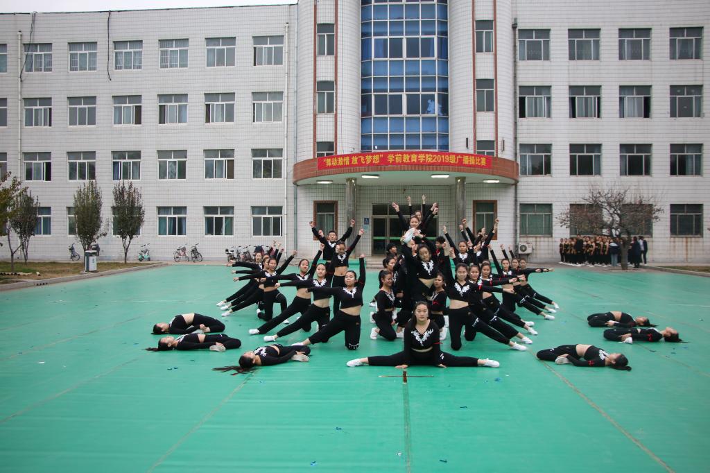 为增强学生“健康第一”的意识,加强学校群众性体育工作,培养学生参与体育活动的兴趣和爱好,提升学校课间操活动质量,学前教育学院于11月22日下午在南院小广场举行了“舞动激情、放飞梦想”为主题的2019级新生课间操比赛。