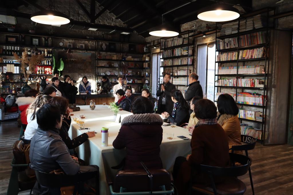 读书会开始前,大家在王大强老师的带领下,观摩了阅湖尚儒研学基地的龙湾书房、鲁班记忆、陶朱公坊、龙湾学舍等泗水县圣水峪镇新时代文明实践分中心、济宁市乡村振兴工作站等地。冬日暖阳照在秀丽的夹山上,浓郁的现代艺术气息与古朴的乡村相得益彰,大家漫步山峦,对如何将文化与艺术之美转化为文化与经济的生产力,融合、带动与助推人才、文化、生态及产业振兴的齐鲁新模式,有了新的收获和认识。