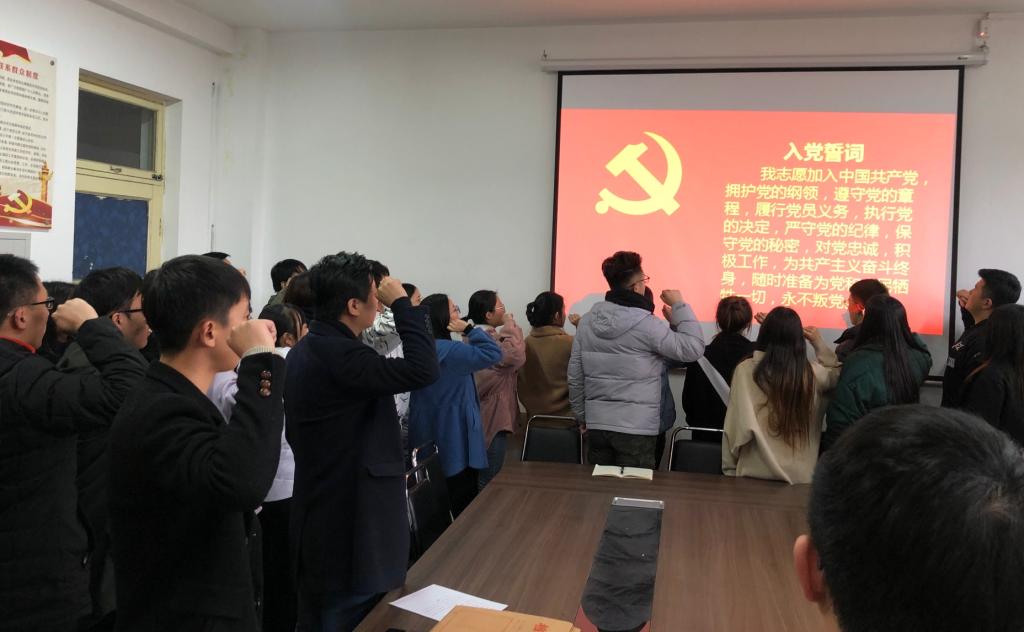 11月27日下午,经济与管理系(儒商学院)教工党支部和学生党支部分别在三楼会议室和党员活动室召开预备党员转正大会暨新发展预备党员入党宣誓大会。全体党员参加会议。