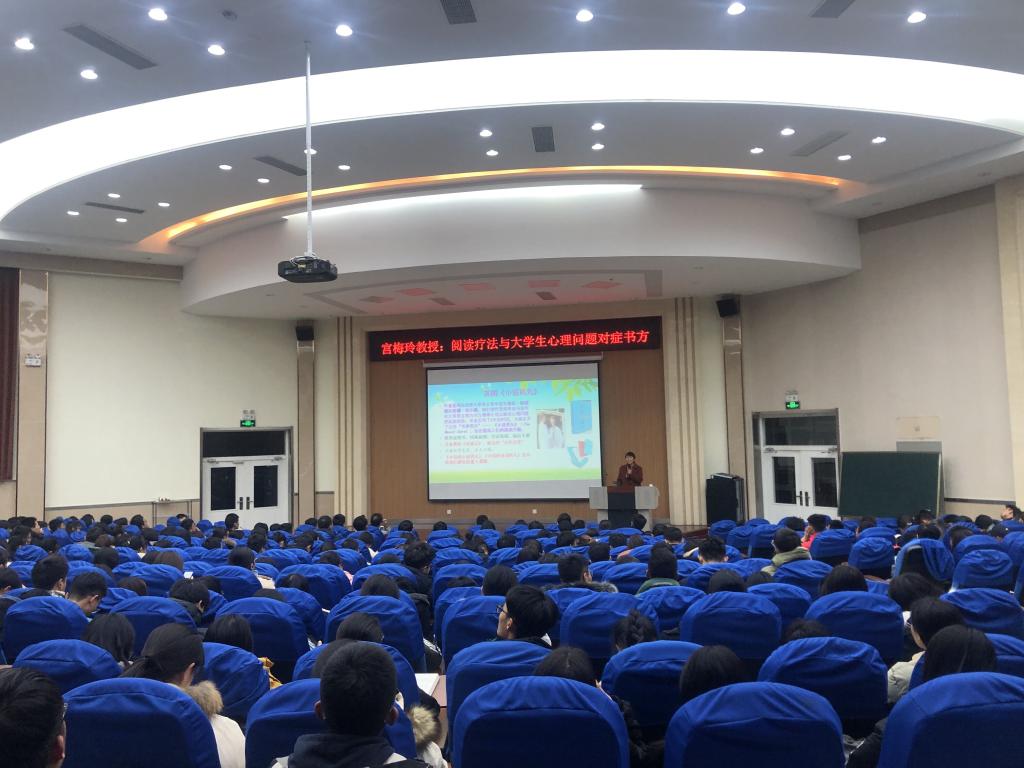 12月5日晚,应我校图书馆邀请,山东第一医科大学研究馆员宫梅玲在3号楼报告厅为我校师生作了题为“阅读疗法与大学生心理问题对症书方”的学术报告。来自全校各院系500余名师生聆听了报告。