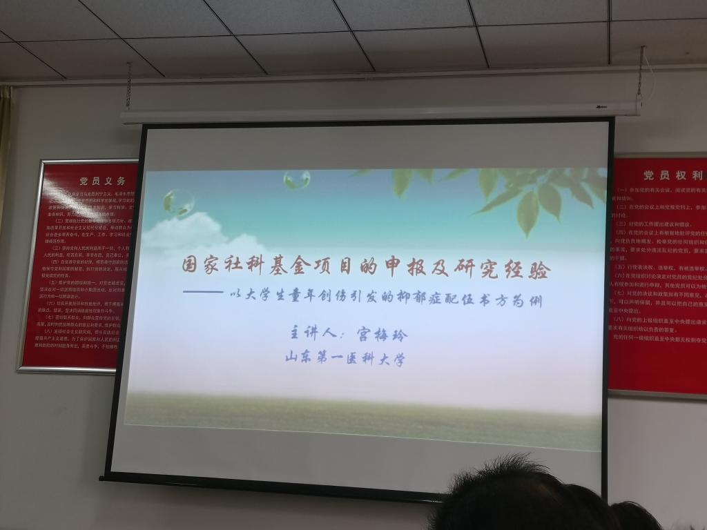 12月6日上午,我校图书馆“图缘讲坛”第17期开讲。中国图书馆学会阅读推广委员会阅读与心理健康专业委员会副主任、国家社科基金项目评审专家库专家、山东第一医科大学宫梅玲研究馆员应邀来我校作了题为《国家社科基金项目的申报及研究经验——以大学生童年创伤引发的抑郁症配伍书方为例》学术报告。