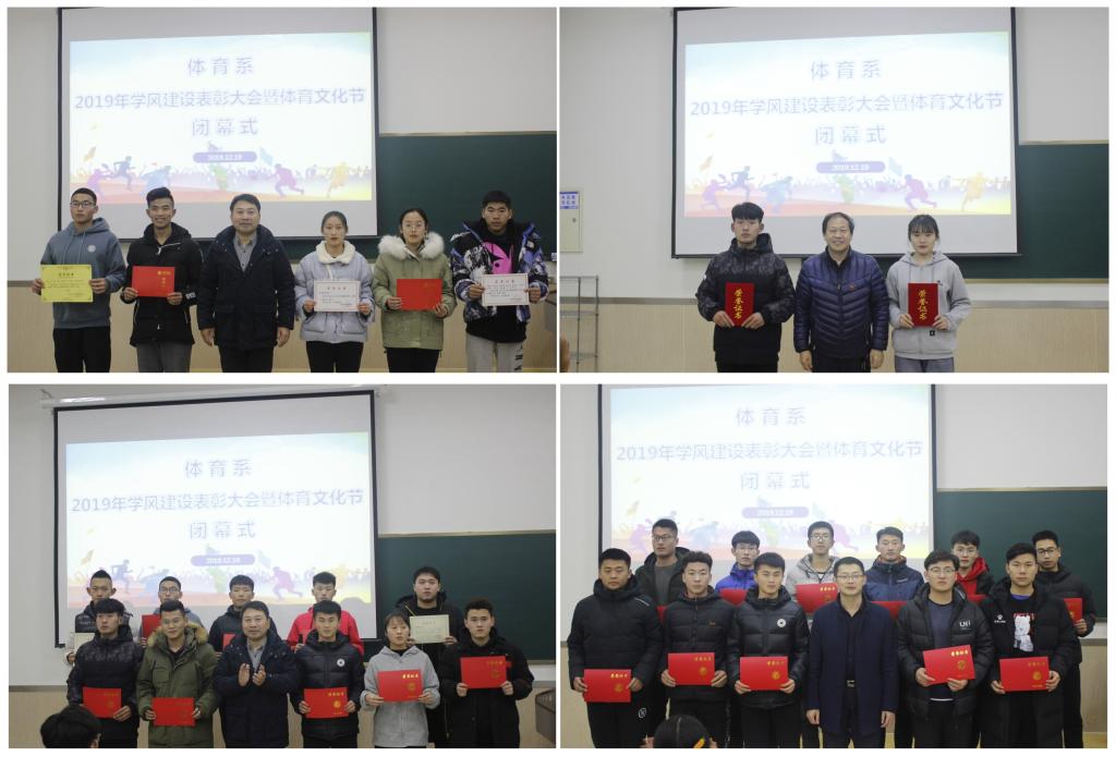12月20日,体育系在2号楼B102召开2019年学风建设表彰大会暨体育文化节闭幕式。体育系主任韩华、系党总支书记辛亚杰、系党总支副书记陈长峰、辅导员马腾及学生代表200余人参加了本次活动。