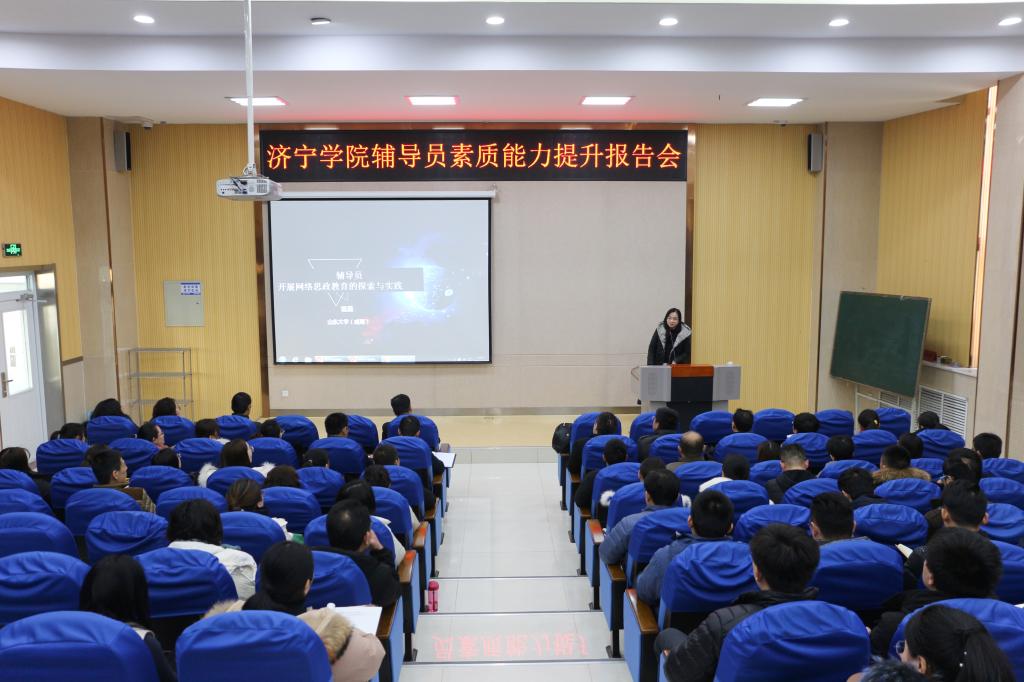 12月27日下午,我校邀请了2019年度全国高校最美辅导员、第九届全国高校辅导员年度人物、山东大学(威海)海洋学院党委副书记、副教授范蕊在9号楼D101智慧教室为辅导员作了“辅导员开展思政教育的探索与实践”的报告。我校各系(院)副书记、辅导员、班主任及学生工作处全体人员聆听了报告。报告会由学生工作处处长夏可树主持。