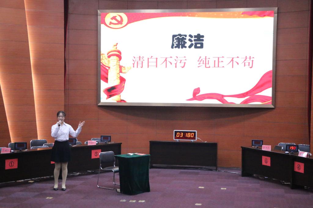 自2018年起,数学系党总支在学校纪委的指导下,积极响应时代号召,以“廉洁笃志,逐梦同行”为主题开展一系列活动,力求将大学生廉洁教育落到实处,落在细处。本次活动经过层层筛选,至诚、至朴、求是、求新、博学、笃志六支参赛队伍脱颖而出。比赛第一环节为抢答,选手们对廉洁知识了然于胸,沉着应战;第二环节“漫话廉洁”要求选手们对不廉洁现象的讽刺漫画进行分析,启发学生对此类现象进行反思;最为精彩的“廉洁讲堂”,各个队伍通过诗朗诵、情景剧、主题演讲、歌曲改编、群口相声等多种形式诠释自己心中廉洁,同学们在精彩的表演中收获了更多的廉洁知识。