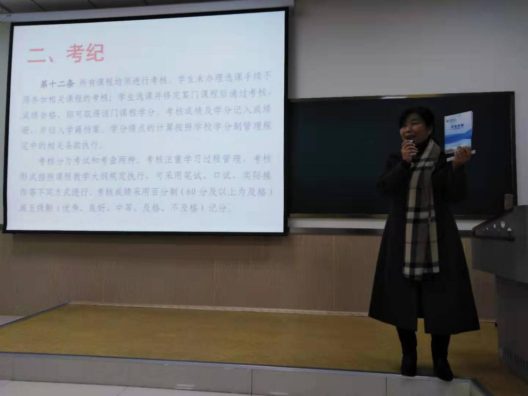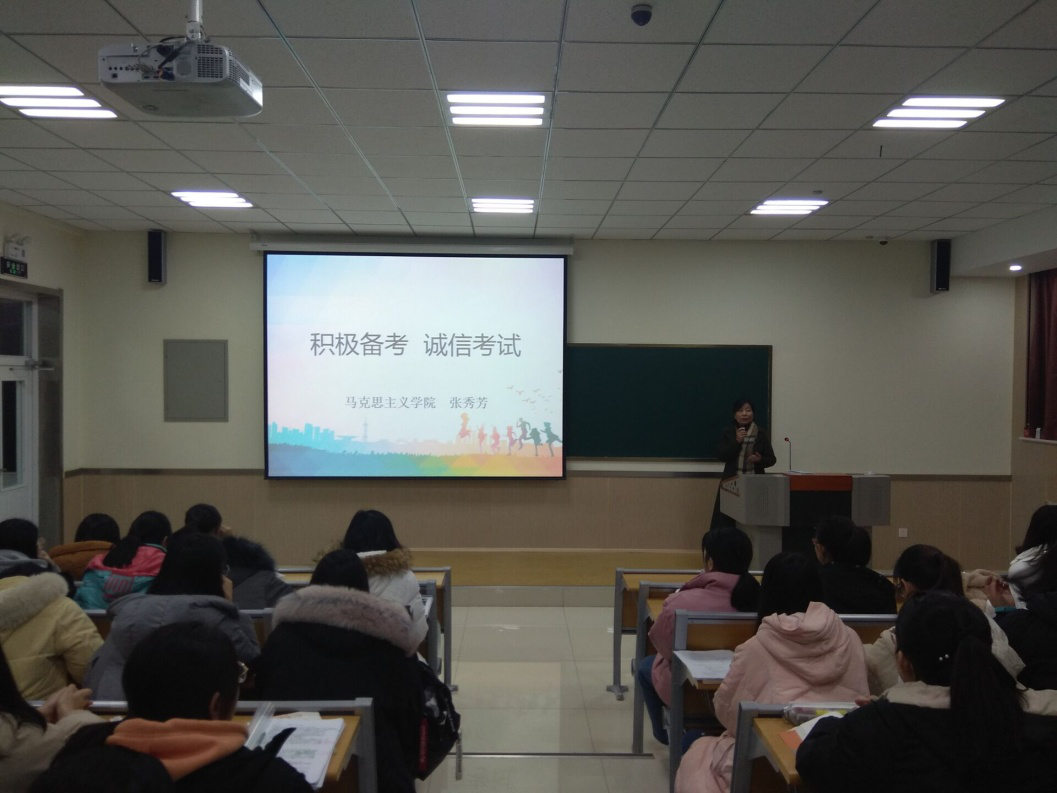 为进一步加强学风建设,树立良好的诚信考试之风,做好寒假前后学生教育管理各项工作,马克思主义学院于1月6日晚召开期末考试动员大会暨寒假学生教育管理工作会议。副院长张秀芳、辅导员姚海生及2019级全体学生参加。