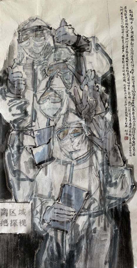 褚滨 作品名称:《致敬卫士》68cmX138cm