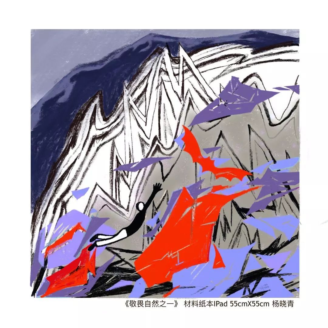 杨晓青 作品名称:《敬畏自然之二》 材料纸本ipad 55cmX55cm