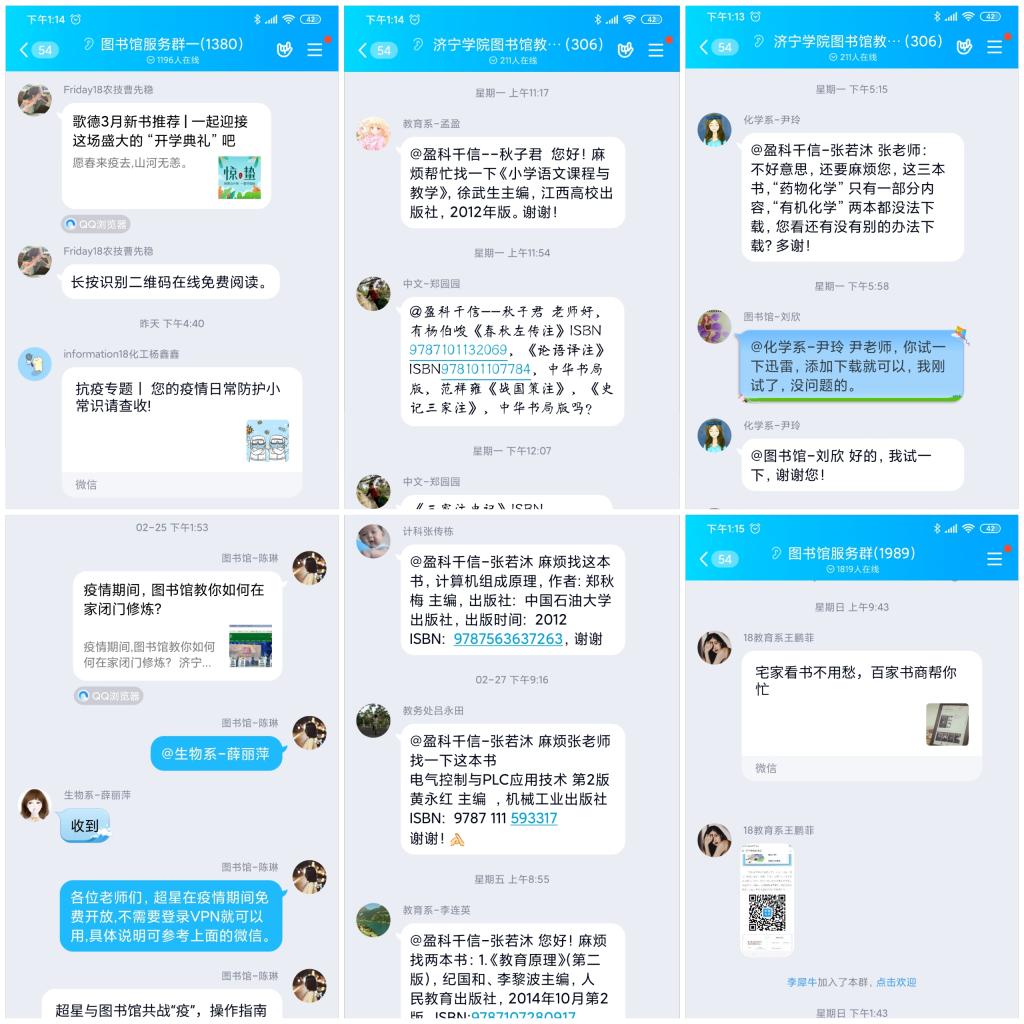 假期延长后,师生读者对图书馆各类文献资源的需求尤为迫切,图书馆在全力保证各数据库资源利用畅通的基础上,迅速升级参考咨询服务,利用已有的5个师生服务群,对全校师生开展线上咨询及文献传递服务。特别是针对教师读者,因“线上教学”的备课需求,许多老师对电子教材教参方面的电子书需求迫切,文献传递数量大大增加,图书馆集全馆之力,24小时轮流值班,通过多种方式求助查找,承诺24小时在线服务,即时响应老师们的需求,为线上教学提供资源保障与支持。截止目前已回复咨询两千余次,传递论文一千余篇(次),传递教材、教参等书籍200余册(次)。