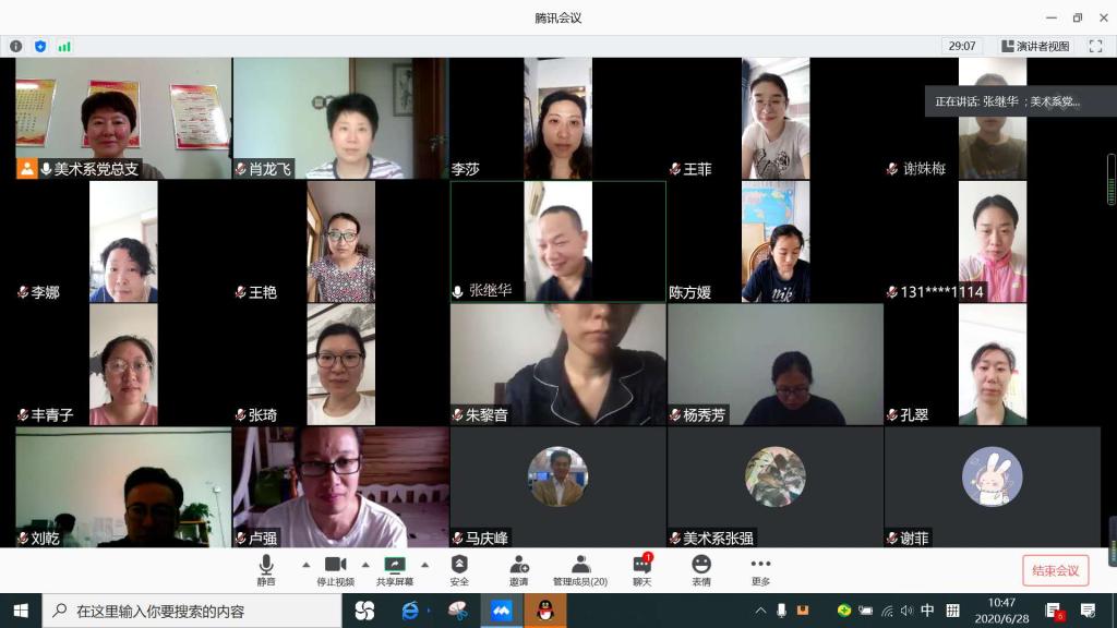 6月28日上午,美术系党总支开展庆祝建党99周年主题党日活动。美术系教工党支部、学生党支部通过腾讯会议举行线上活动,全体党员参加。
