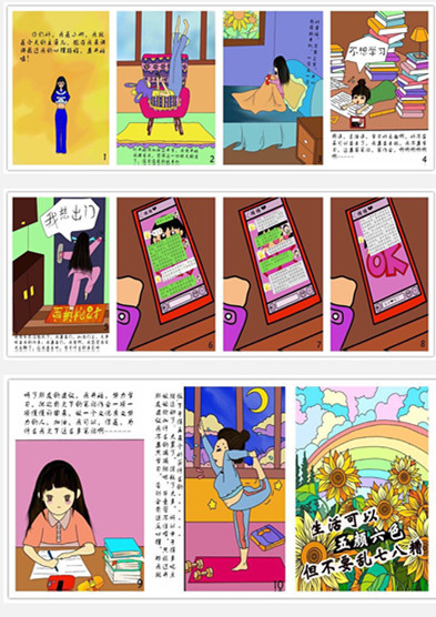 心理健康原创漫画大赛:漫笔为矛,同战疫情。把心理健康教育与书画相结合,通过连环漫画形式将疫情期间复杂的心理活动呈现出来,体验心灵健康之美。