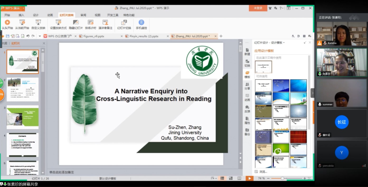 张素珍老师从自身论文写作经验出发,向大家讲述了论文写作需结构严谨,表达简明,语义确切;及时跟踪各研究领域最新热点研究问题,提高批判性思辨能力,梳理相关研究的来龙去脉与研究得失;与相关领域专家多交流,逐渐建构自己的学术社团身份。张老师还从语言的角度具体分析了高水平国际学术论文发表过程中常见的逻辑和语言问题。