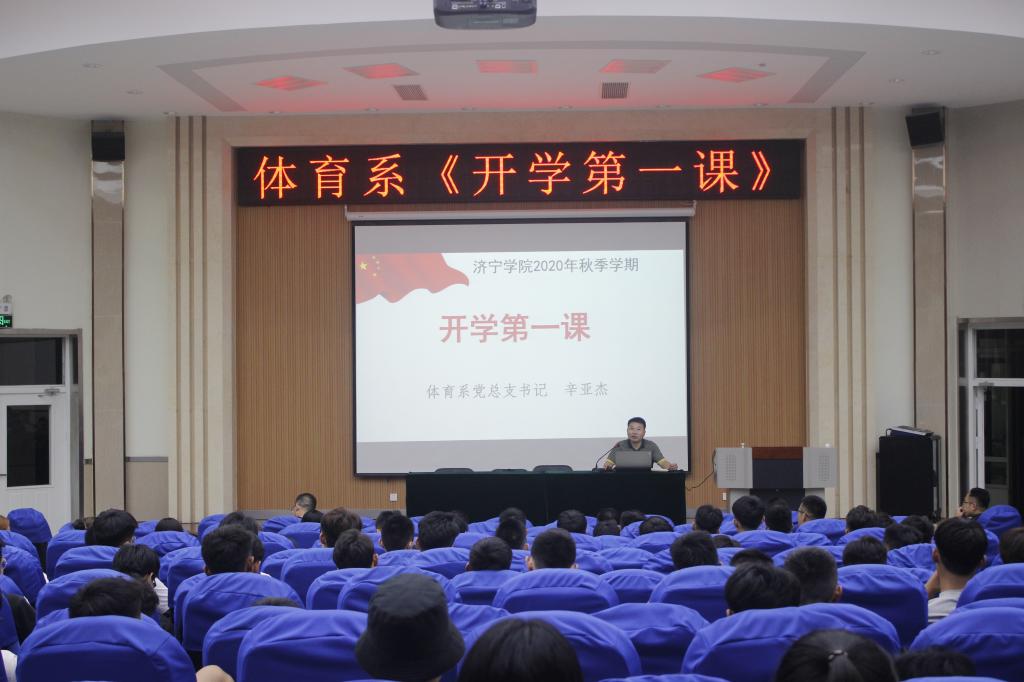 为加强爱国主义教育和激发青年学生的责任担当意识,9月6日晚,体育系党总支书记辛亚杰在3号楼报告厅为返校学生讲授“开学第一课”。系党总支副书记陈长峰,辅导员马腾、孔李俊,2017级至2019级返校学生参加。