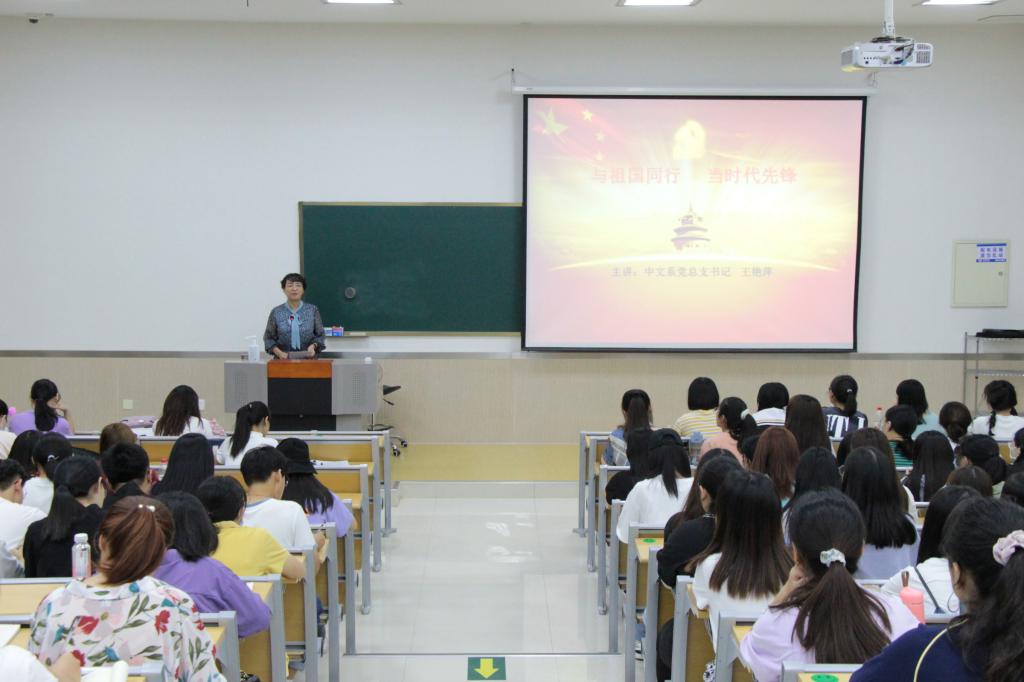 9月19日,中文系第三十九期入党积极分子培训班在文科楼B201室开班。系党总支书记王艳萍作开班动员并以《与祖国同行,当时代先锋——深入学习领会党的十九大精神》为题开讲。中文系206名入党积极分子参加培训。