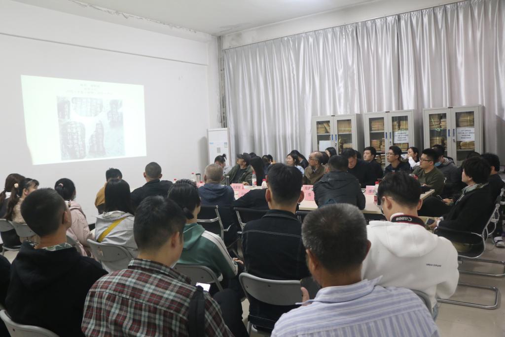 讲座交流活动以“信仰·时空及图像”为主题,肖庆祥主讲了《“师法”与“风流”魏晋南北朝的铭刻与书写》,通过正体书的“师法”传统、汉末魏晋学术分化与迁移、“师法传承下的北书演进”三个模块讲述研究成果,并因题展开研讨;张强结合在曲阜、邹城、枣庄等地考察摩崖石刻的经历,讲解《僧安道一的“记号”》、《“般若”刻石的真伪论争》两个单元,共同感受僧安道一大规模书刊遗迹的美学价值,引导学好用好汉碑、摩崖石刻等身边的丰富资源,提高审美自觉,善于发现探索研究。整个活动收到了深度互动、教学相长的良好效果。