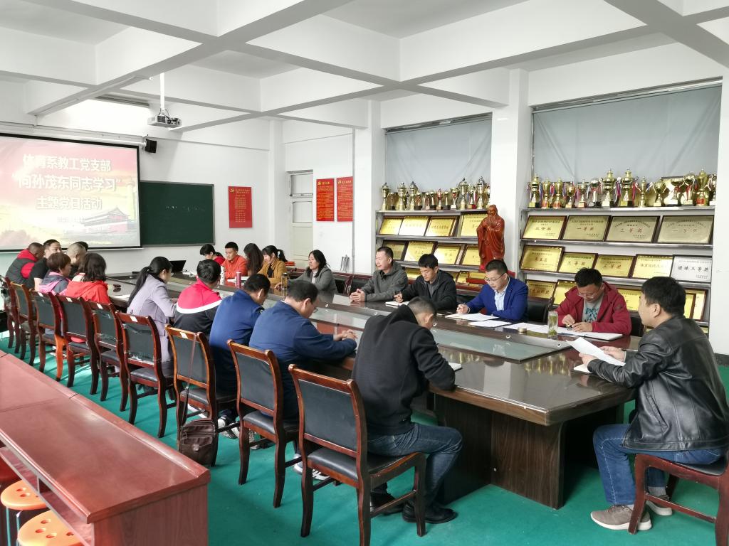 根据《中共济宁市委关于开展向“微山湖上好支书”孙茂东同志学习的决定》和学校党委组织部《关于开展“向孙茂东同志学习”主题党日的通知》安排,体育系学生党支部、教工党支部分别于10月25日、26日,开展了“向孙茂东同志学习”主题党日理论学习研讨会。