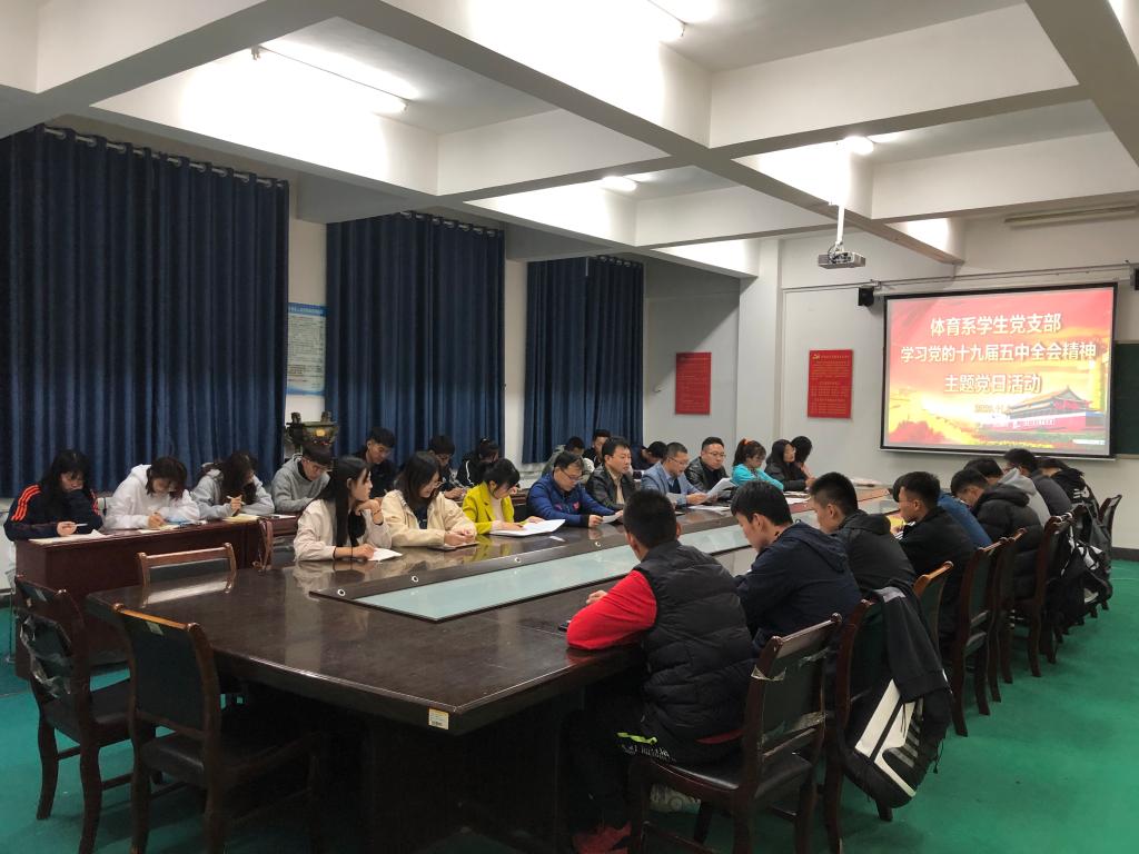 11月8日下午,体育系学生党支部开展学习研讨主题党日活动,深入学习党的十九届五中全会精神。系党总支书记辛亚杰应邀与支部全体党员、发展对象、入党积极分子代表参加理论学习研讨会。会议由学生支部书记陈长峰主持。