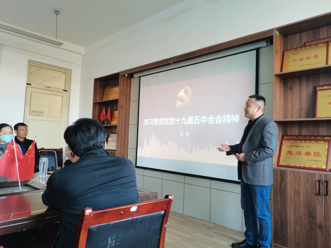 11月11日,经济与管理系在会议室开展“党的十九届五中全会精神”党课学习活动。本次党课由经济与管理系党总支书记陆波主讲,全体教职工参加本次党课。
