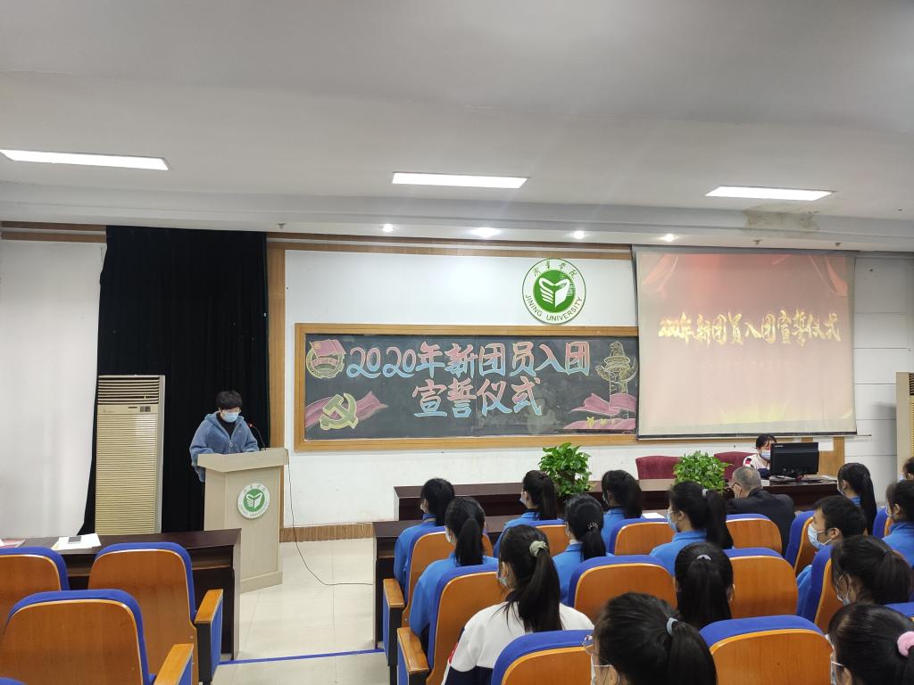 最后,校区党总支副书记吴剑锋发表了热情洋溢的讲话,他向新成员表示祝贺,表示入团是人生新的起点,而不是终点,并给新团员提出三点希望:一是希望新团员坚定信念,明辨笃实;二是希望新团员珍惜韶华,勤奋学习;三是希望新团员明德至善、砥砺品性。活动在嘹亮的团歌声中圆满结束。