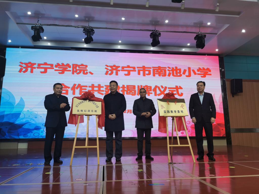 12月2日,中文系与济宁市南池小学合作共建签约仪式在南池小学举行。中文系主任王永超、南池小学校长沙军在合作共建协议书上签字,并共同为“济宁市南池小学 亚星在线登录官网中文系优师培训基地”揭牌。亚星在线登录官网教学实践基地签约暨揭牌仪式同时举行。学校教务处副处长臧玉强、任城区教育体育局局长李书争为基地揭牌。学校教务处教学质量管理科副科长武泉林、中文系党总支副书记李青参加签约仪式。