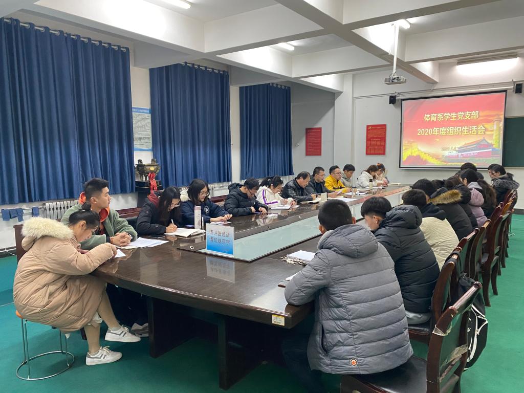 根据学校党委《关于召开2020年度组织生活会和开展民主评议党员几个问题的通知》要求,1月4日,体育系学生党支部在系党员活动室召开2020年度组织生活会。支部帮包联系人系党总支副书记、主任韩华教授出席支部会议并进行点评,支部在校党员参加会议。会议由系党总支副书记、学生支部书记陈长峰主持。